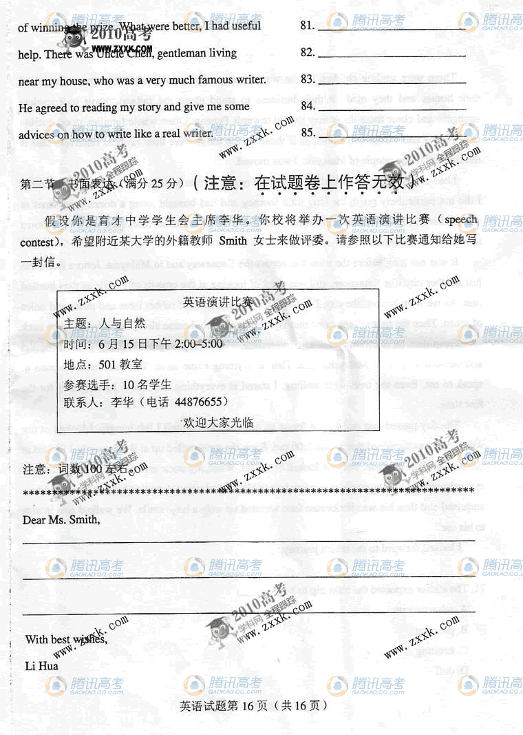 [组图]2010年河北 河南 山西 广西高考英语试题(全国1卷)
