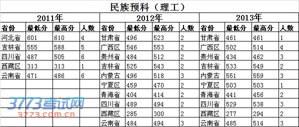 [组图]北京科技大学国防生民族预科内地班近三年录取分数线