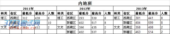 以下是我校国防生,民考汉,民族预科,内地班的近三年招生录取情况,供各位考生和家长参考。