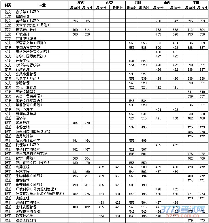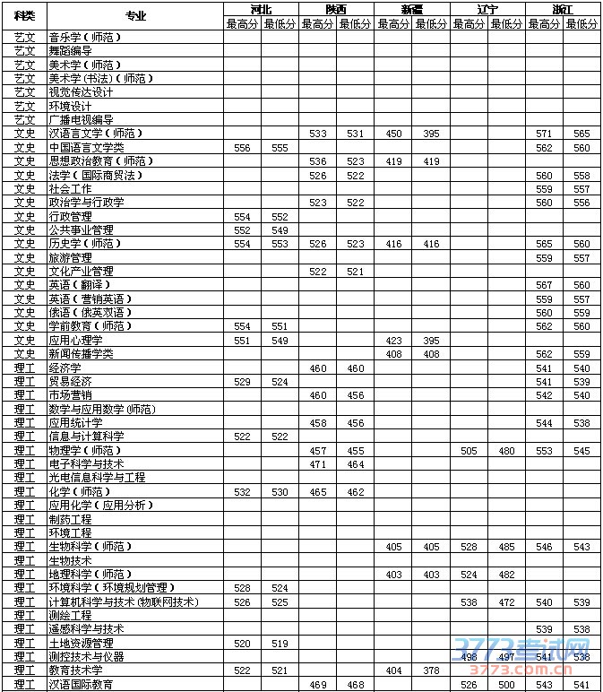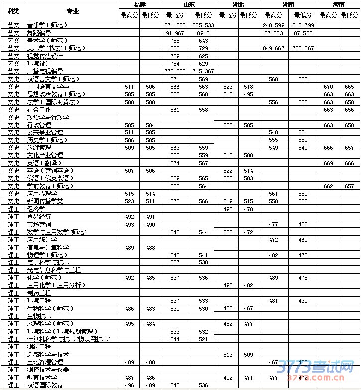 [组图]江苏师范大学2013年省外分专业录取分数线