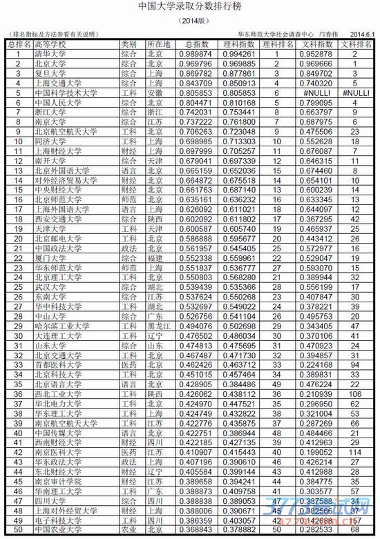 该榜单分总指数、理科指数与文科指数三个指标。文理科指数分别是以多个文理科招生单元为单位,计算出来的值的加权平均数。而总指数,是文科指数与理科指数的加权平均数。值得一提的是,大学录取分数的高低与学校所在地也高度关联,像地处直辖市与沿海地区的院校就更受追捧。其中,北京、上海、天津、江苏与广东分列前5位。