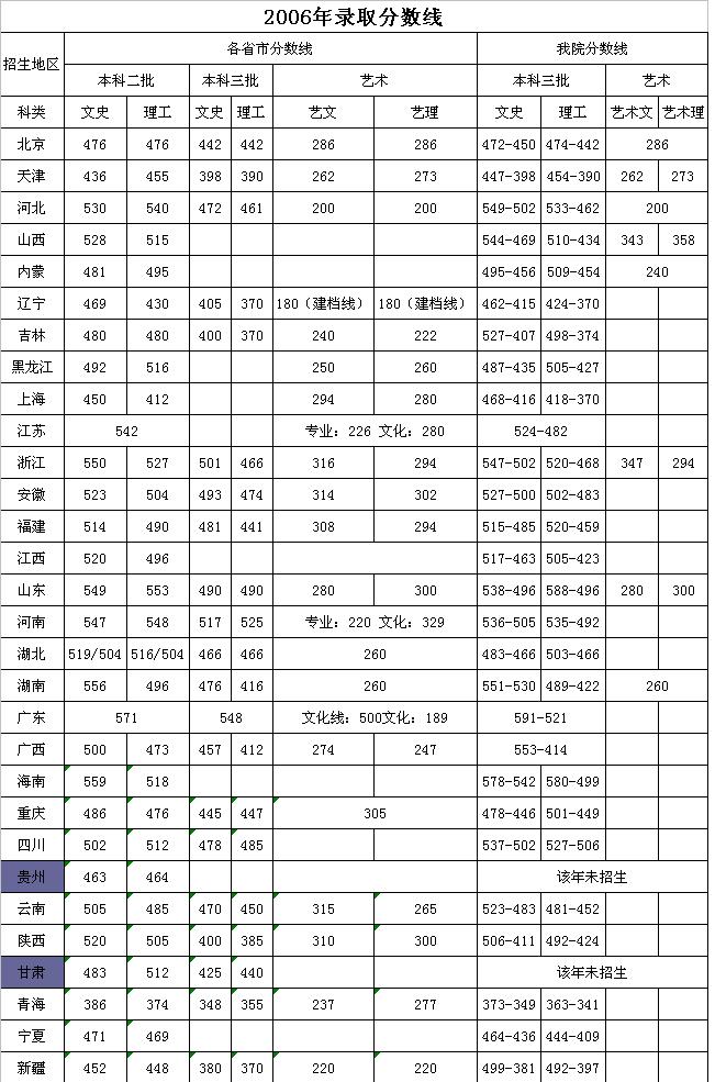 [图文]天津商业大学宝德学院2006年各省录取分数线