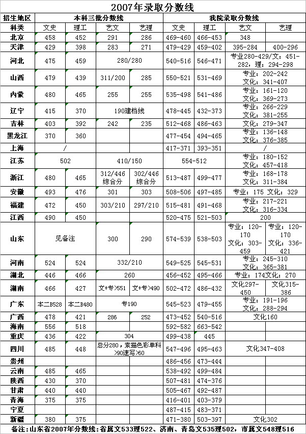 [图文]天津商业大学宝德学院2007年各省录取分数线