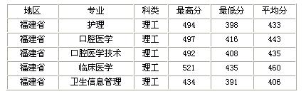 [图文]厦门医学高等专科学校2007年福建分专业录取分数线