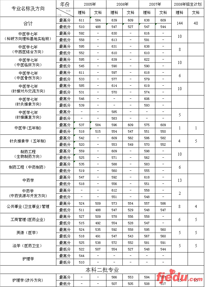 [图文]北京中医药大学2005-07年在北京录取分数线