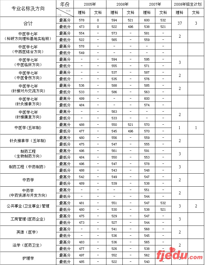 [图文]北京中医药大学2005-07年在天津录取分数线
