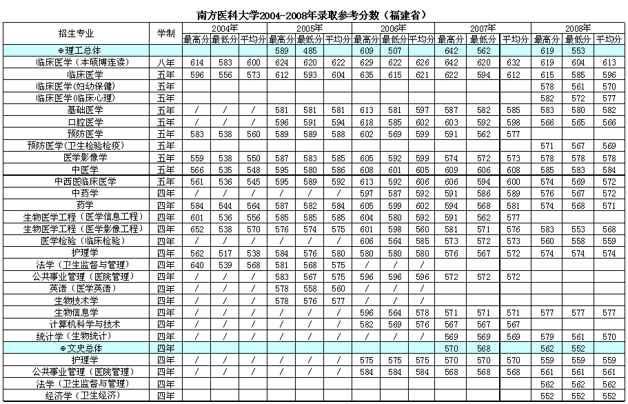 [图文]南方医科大学2004-2008年福建省录取分数线