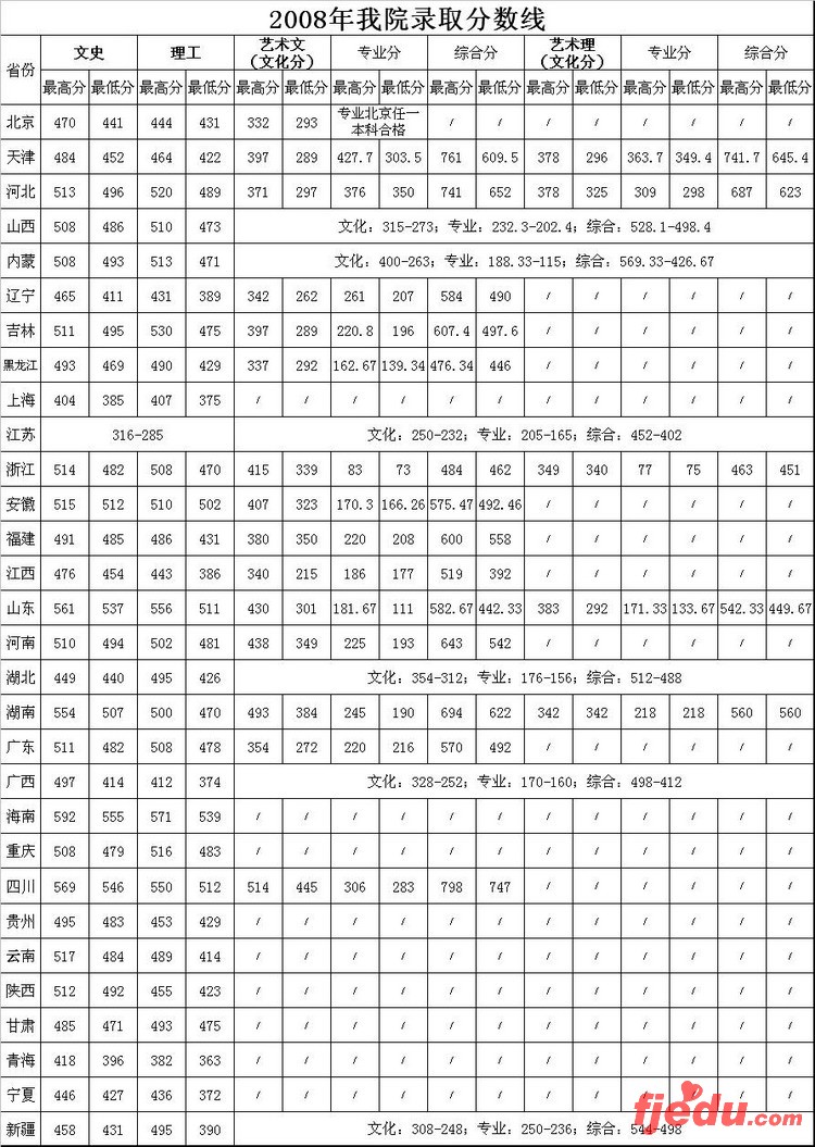 [图文]天津商业大学宝德学院2008年各省录取分数线
