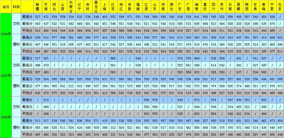 [图文]湖南农业大学外省2006-2008录取分数线一览表