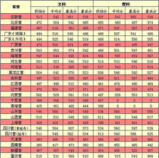 [图文]北京师范大学珠海分校2008年各省录取分数统计表