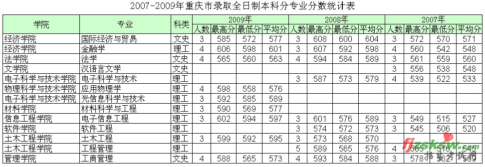 [图文]2007-2009年深圳大学在重庆市录取分数线