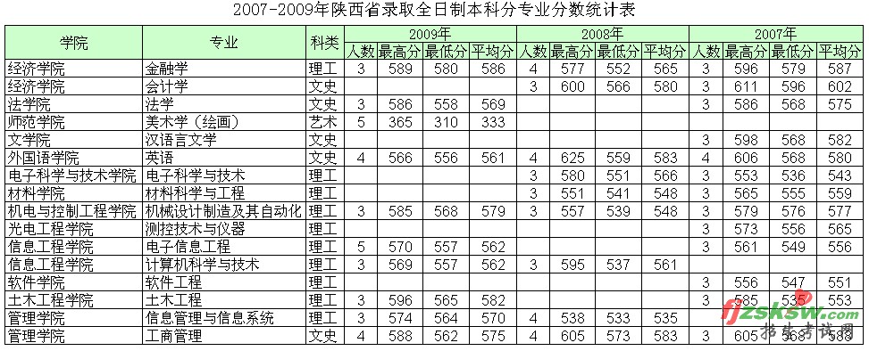 [图文]2007-2009年深圳大学在陕西省录取分数线