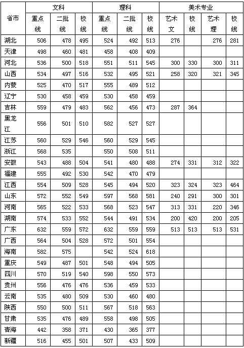 [图文]湖北工业大学2005年各省市录取分数线情况统计