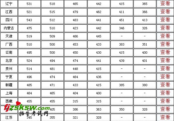 [组图]2010年各省高考录取分数线排行
