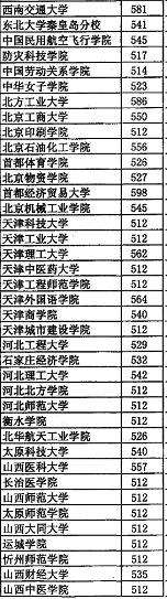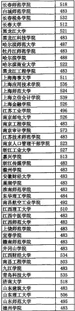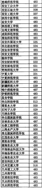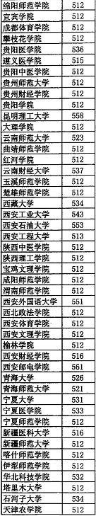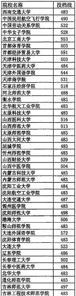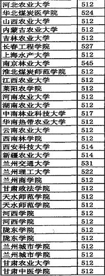 2006年甘肃省普通高校招生录取第二批院校提档线