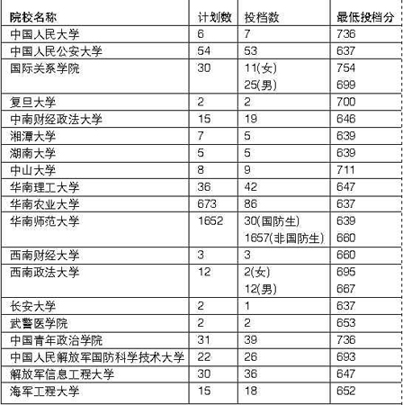 时报讯 (记者 薛冰 实习生 梁健敏 通讯员 廖翊华) 记者从省招生办获悉,高考录取于昨日全面展开,共有31所部队、公安、师范及招收国防生的院校进场录取,提前批院校的投档线昨日初步划定,中山大学国防生投档线高达711分,华工为647分,华南师范大学1600余名师范类投档线660分,今年师范专业依然广受追捧。