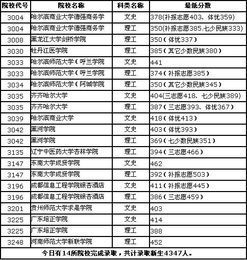 黑龙江省普通高校招生录取最低分数线(2006.8.17)