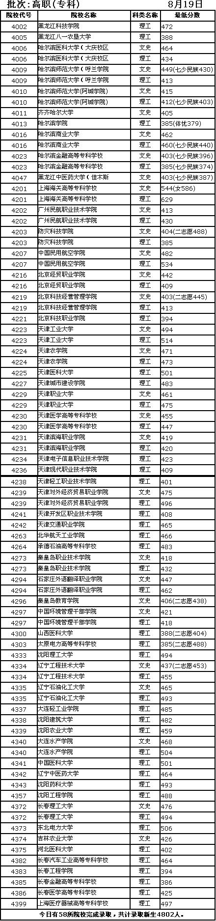 黑龙江高招生录取最低分数线(2006.8.19)