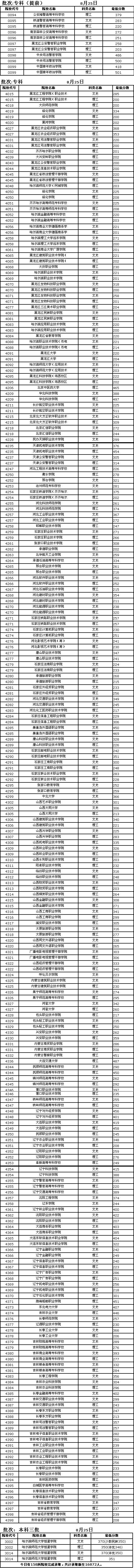 黑龙江高招生录取最低分数线(2006.8.25)