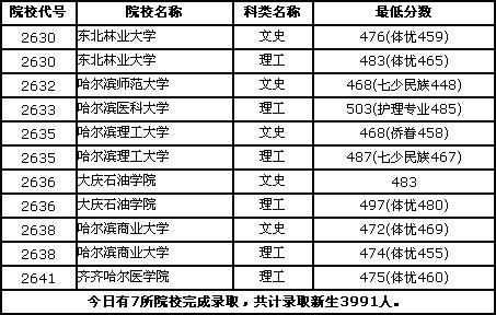 黑龙江省普通高校招生录取最低分数线(2006.8.3)