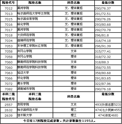 黑龙江省普通高校招生录取最低分数线(2006.8.6)