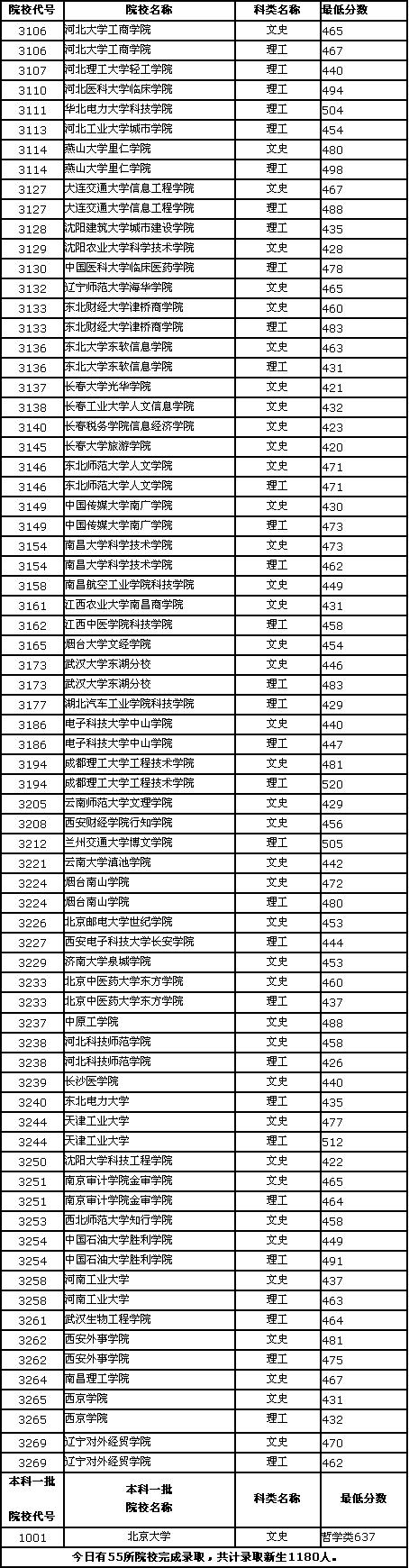 黑龙江省普通高校招生录取最低分数线(2006.8.7)