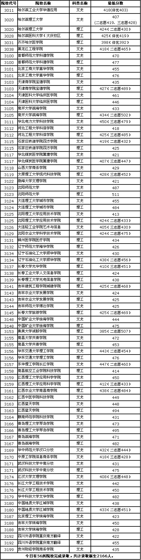 黑龙江省普通高校招生录取最低分数线(2006.8.11)