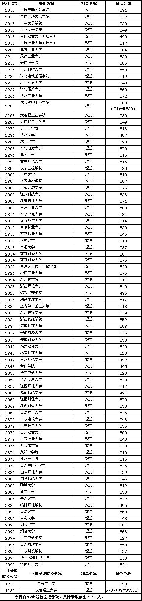 黑龙江高招生录取最低分数线(2006.7.22)