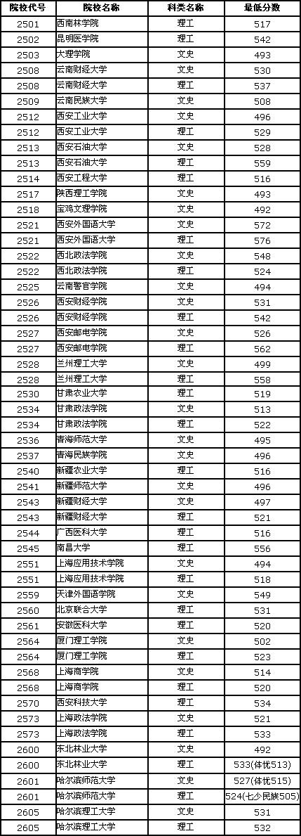 黑龙江省普通高校招生录取最低分数线(2006.7.24)