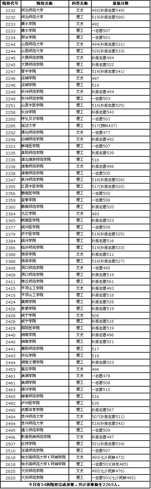黑龙江高招生录取最低分数线(2006.7.31)