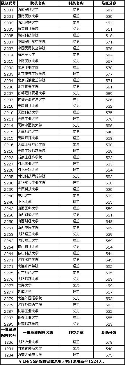 黑龙江省普通高校招生录取最低分数线(2006.7.21)
