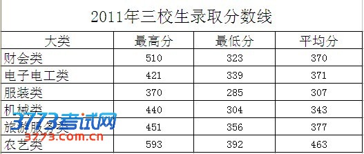 2011三校生录取分数线 2011杭州万向职业技术学院三校生录取分数线