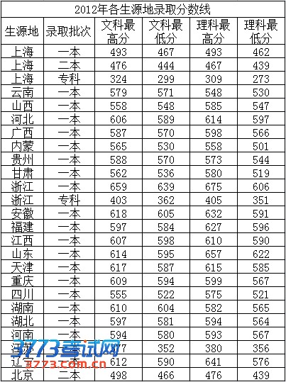 [图文]上海对外经贸大学上海对外贸易学院2012年录取分数线