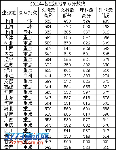 [图文]上海对外经贸大学上海对外贸易学院2011年录取分数线