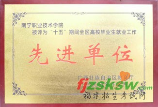 十五期间广西高校就业工作先进单位牌匾 南宁职业技术学院拥有广西高职院校第一位“国家教学名师”和一批技术能力强的“双师型”教师。拥有实训实习设备总值近1亿元人民币,有6大校内实习实训基地和70多个校外实习实训基地、其中“电工电子与自动化”、“计算机应用与软件技术”是中央财政重点支持建设的国家级实训基地。在专业改革与建设中,南宁职业技术学院着力打造高职教育专业品牌,已建成国家精品专业1个,广西精品专业2个,广西优质专业17个,精品专业、优质专业数均列广西高职高专院校第一。