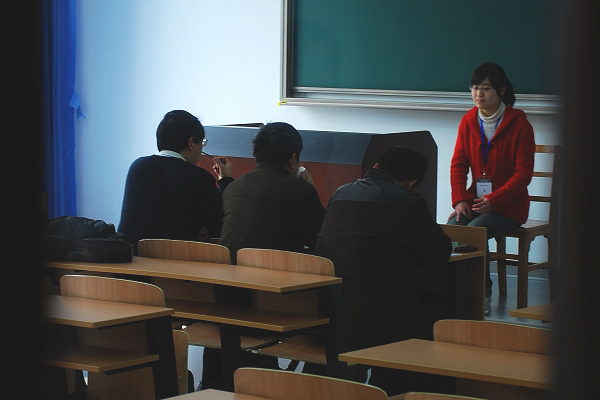 进入考场之前,每位考生都不知道自己和谁在同一个组,也不知道将要接受哪些专家的面试。他们首先抽签确定面试房间,确定了A组(3人)与B组(2人)面试专家,接下来抽签确定面试次序。A、B两组专家的搭配也是不确定的,每半天轮换一次。学校纪律检查部门全面介入面试过程,防止考试相关信息的泄漏。此外,考场附近还安装了手机信号屏蔽仪器,在考试期间阻断学生、专家与外界的通讯联络。