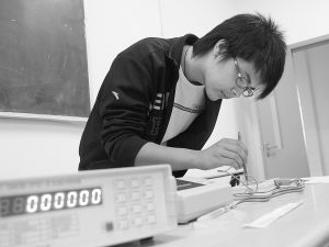 5月3日,在2009年宁波职业技术学院自主招生考试的现场,机电一体化专业和模具制造专业的考生正在进行双手协调能力和手臂稳定性测试。