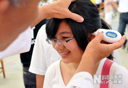 9月4日,海南医学院2009级新生正在测量体温,防控甲型H1N1流感。