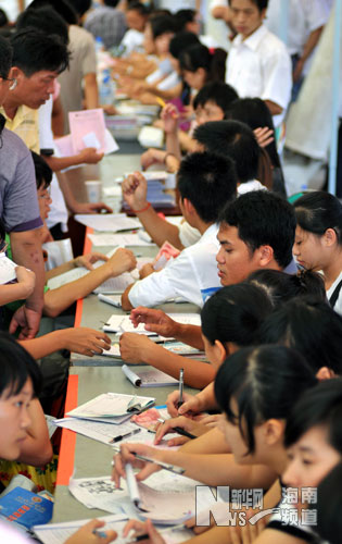 9月4日,海南医学院2009级新生正在进行入学报到。
