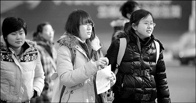 北京大学等3校联考的考试分为上下两场,上午3个半小时考语数外3门,下午为物理、化学(理)或者历史、政治(文),考试到下午4点结束。虽然时间比清华要短,但是考生仍感到不适应。