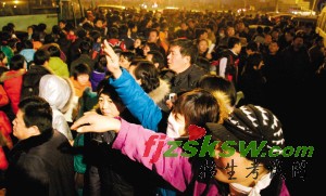 昨天晚上8:00,家长在考点外迎候走出考场的孩子 记者 傅琪媛 摄
