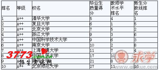 3、将每所大学的教师平均学术水平名次与新生录取分数线名次相加,升序排列后给出名次,就得到在同一标准下,全国705所大学的本科毕业生质量排名中国大学本科毕业生质量得分前10名见下表。若得分相同,按教师学术水平排列。