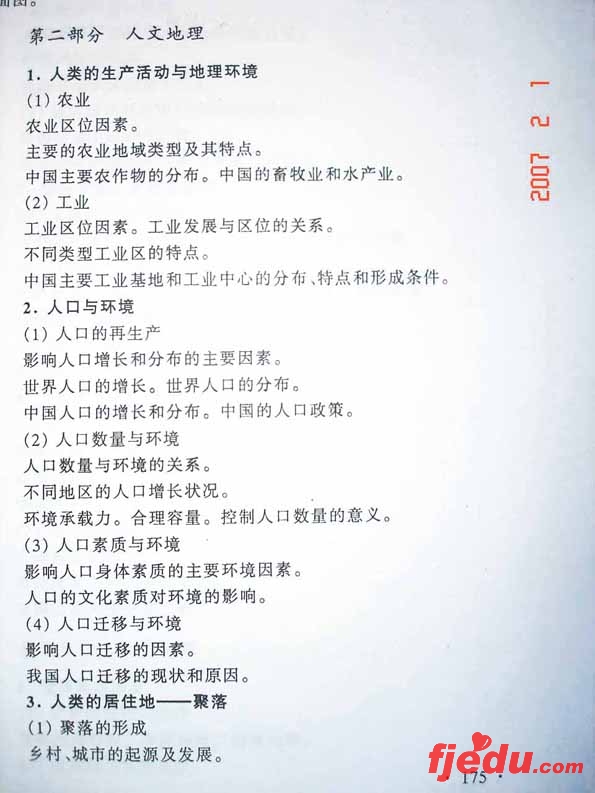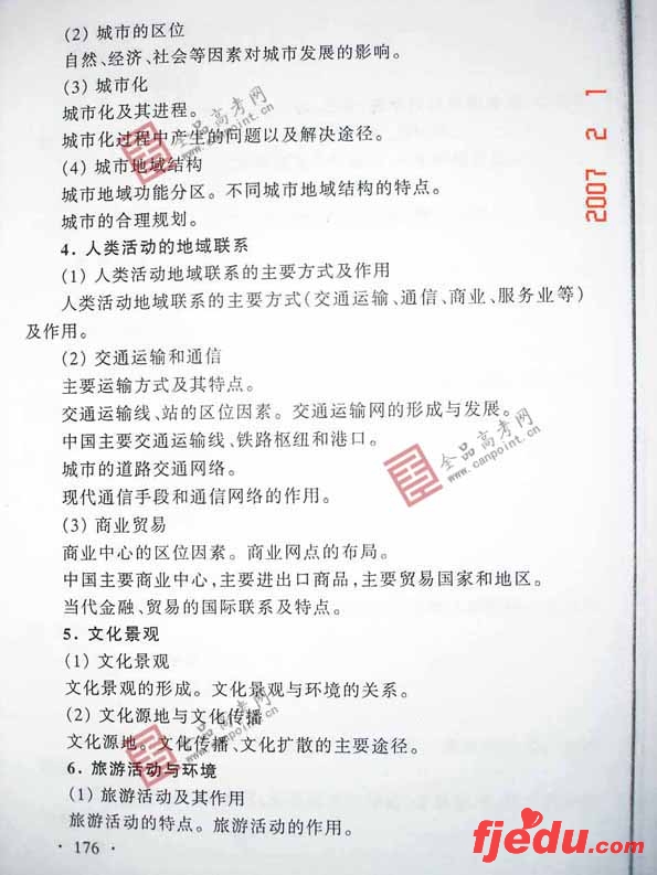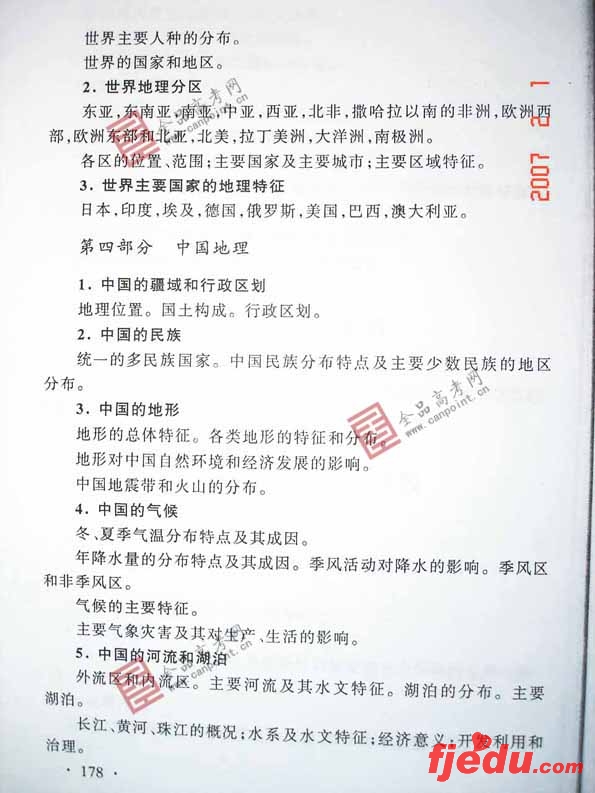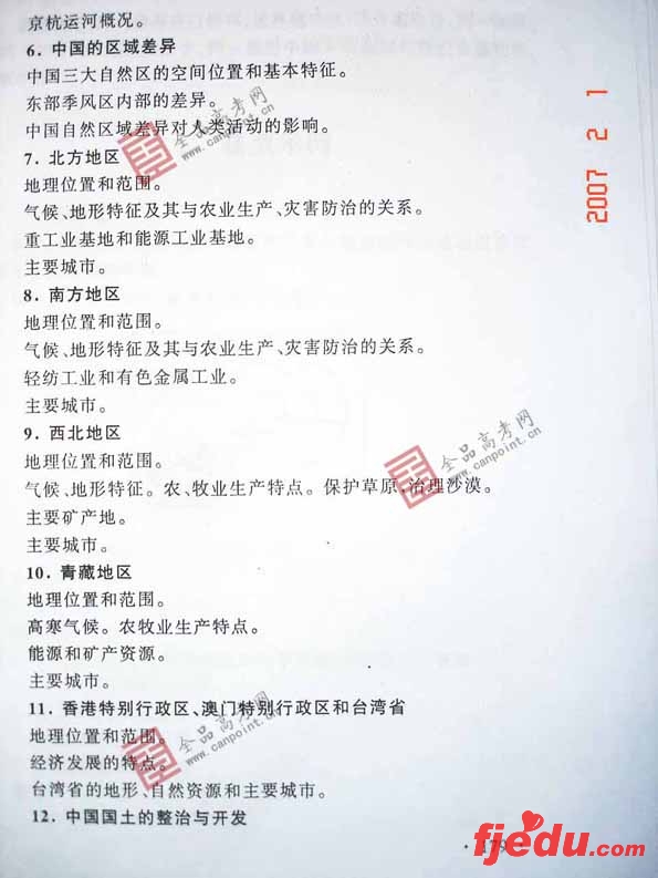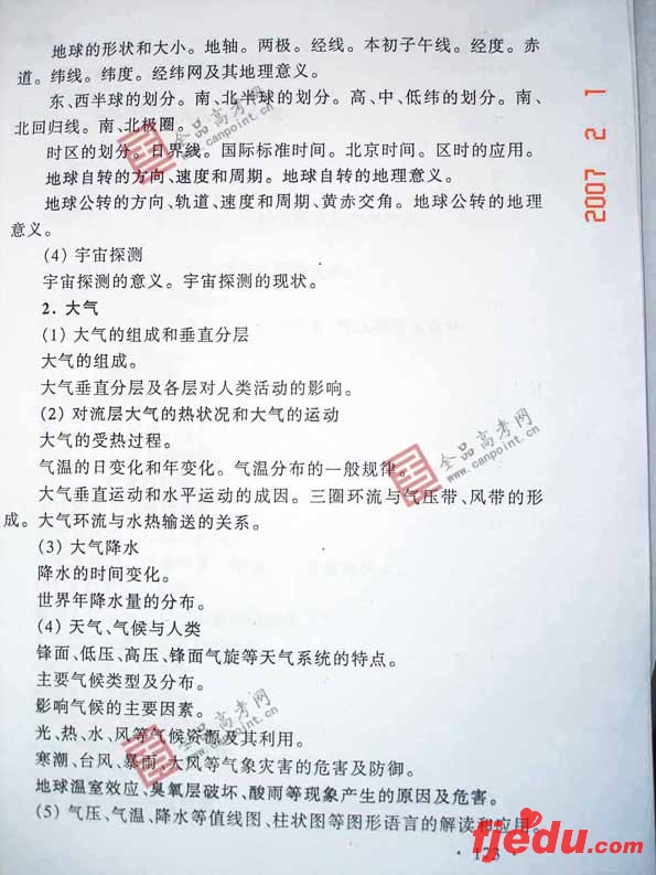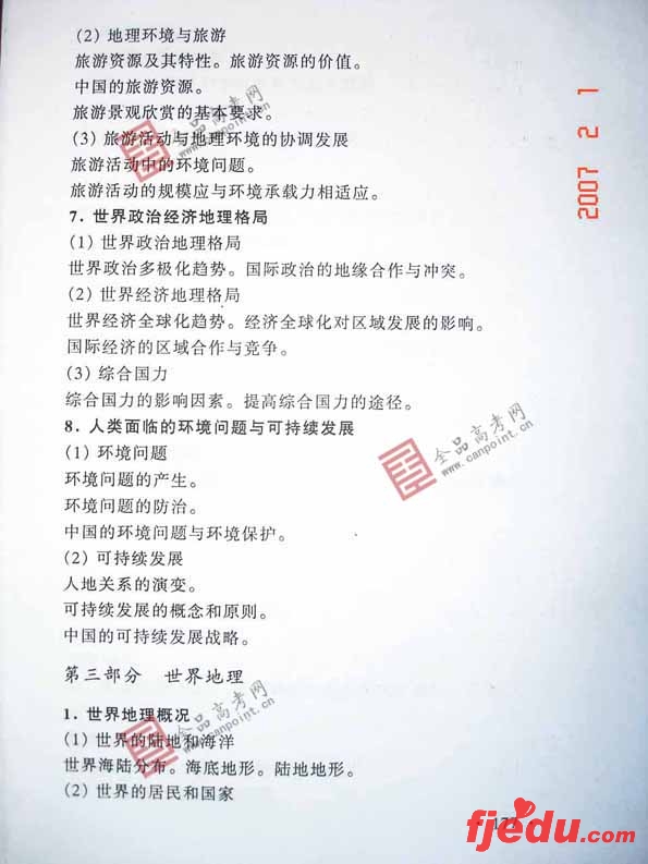 [组图]2007年全国统一考试地理高考考试大纲