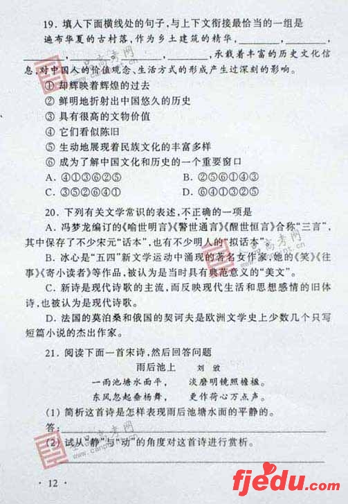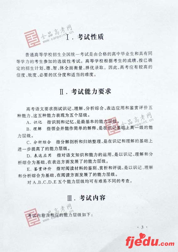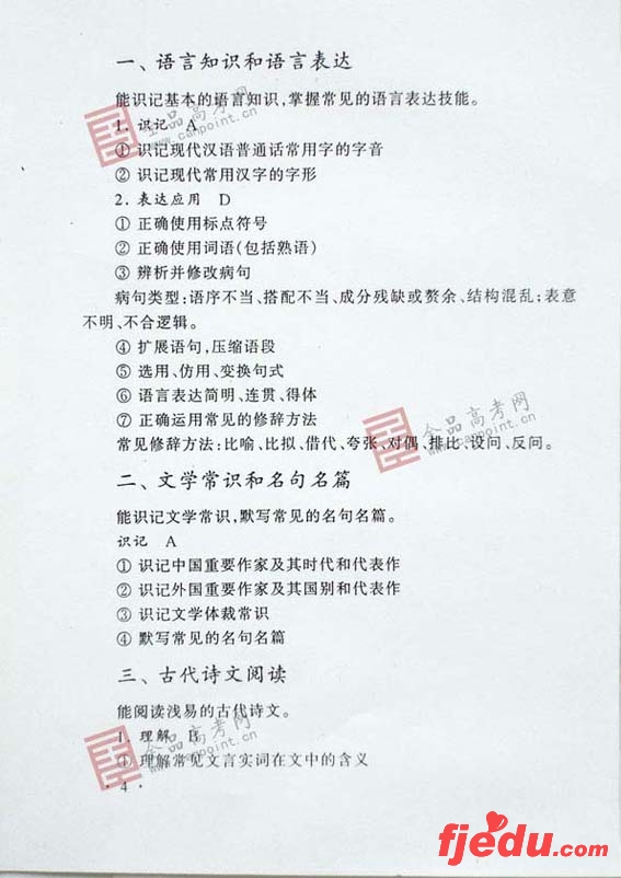 2007年普通高等学校招生全国统一考试语文考试大纲(完整版)