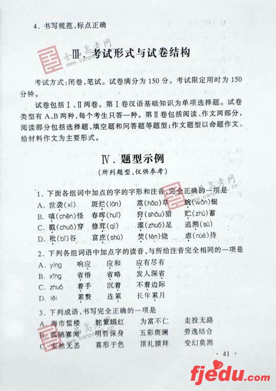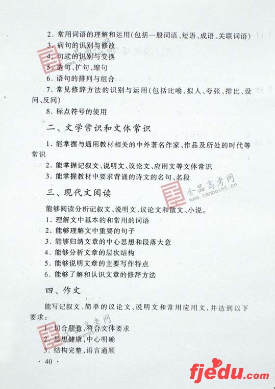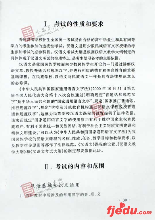 2007年普通高等学校招生全国统一考试汉语文考试大纲(完整版)