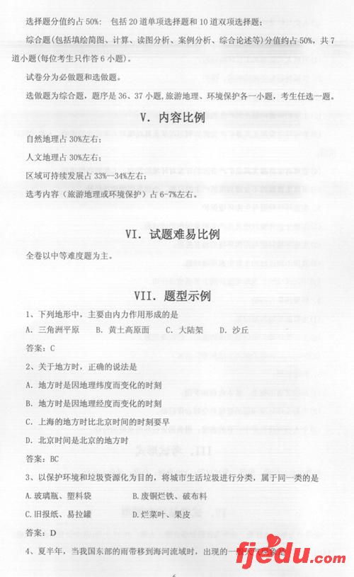 [组图]广东2007年高考卷地理学科考试大纲说明
