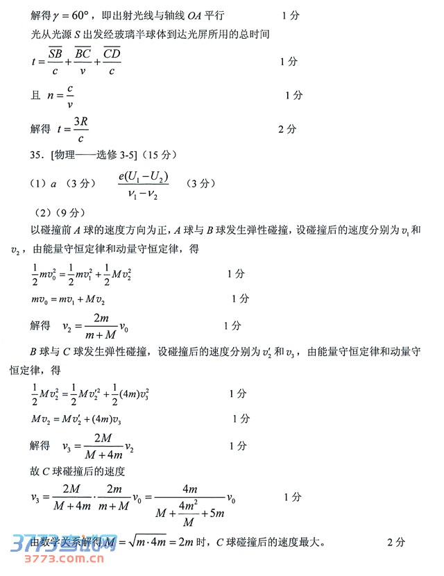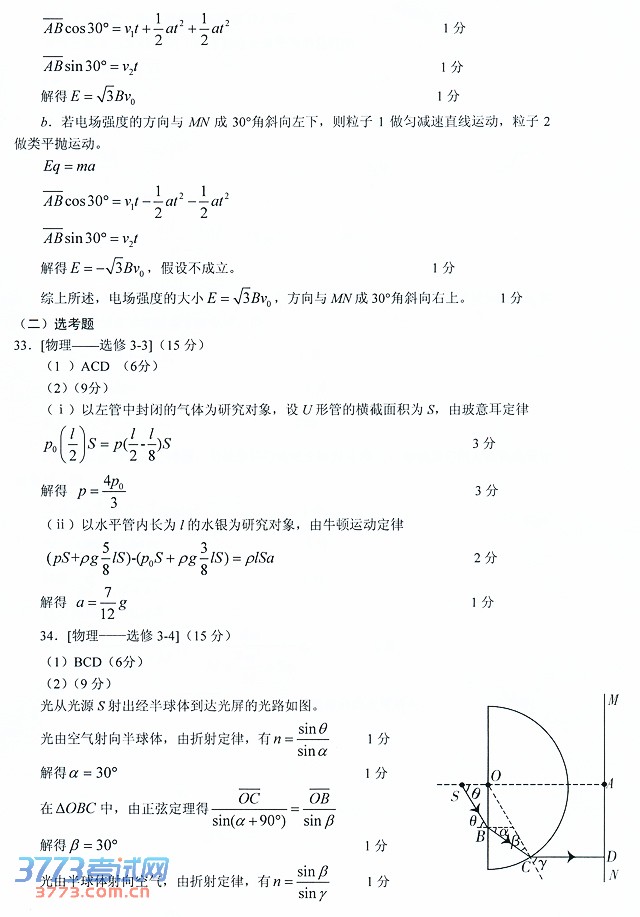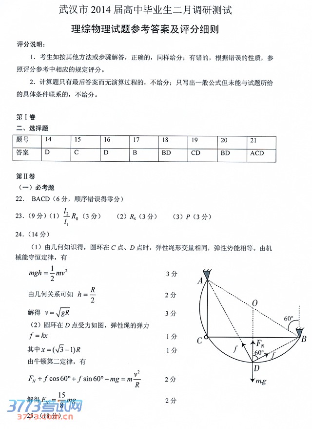 [组图]2014武汉市二月调考理综物理试卷答案及评分细则