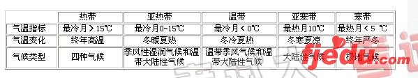 根据提供的气温和降水资料,一般可分为全年几个月或各月气温和降水的统计表,按照一定的标准来判断气候类型的方法,称为数据法。A、从气温上看,可将世界气候类型归纳为以下五种:(见下表)