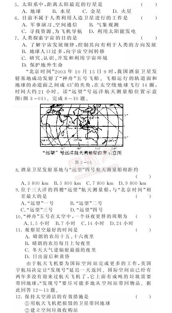 2007年高考地理考点双测题解:宇宙及其探索