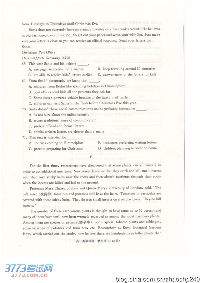 3773考试网2016高考高考英语正文